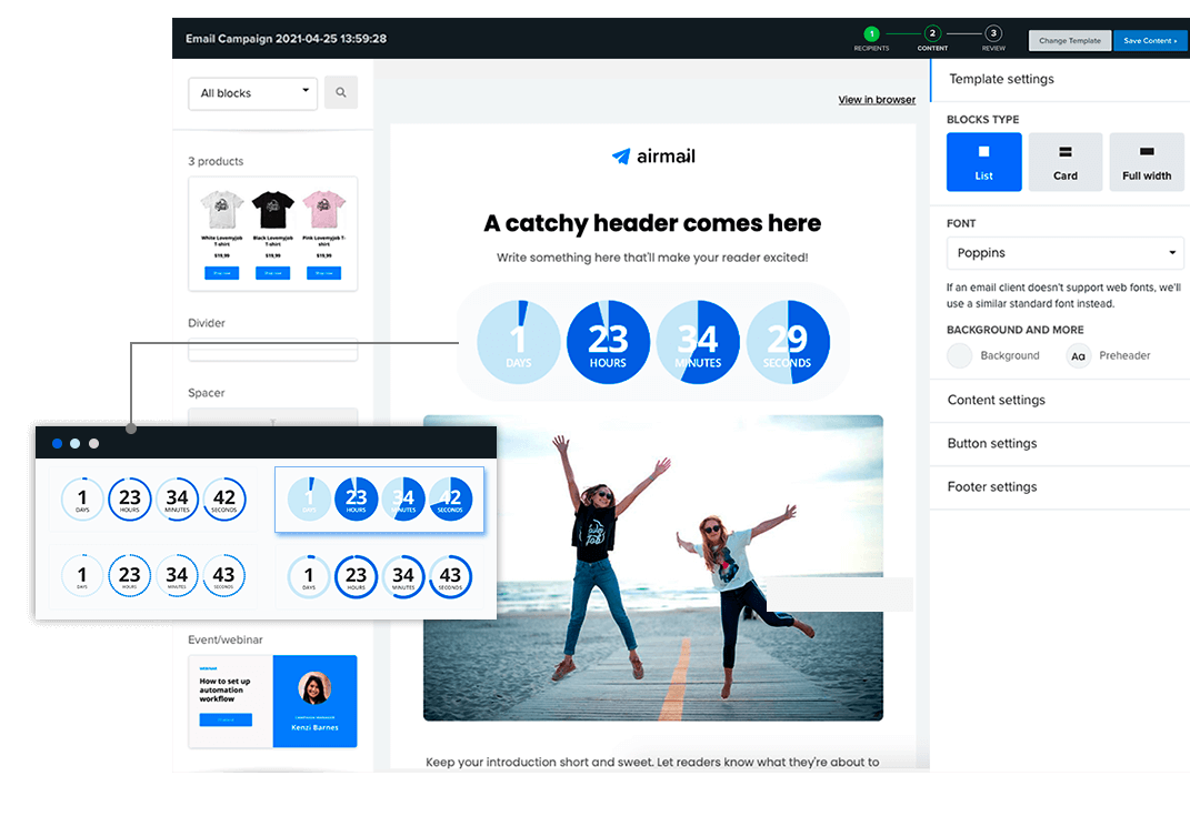 with countdown timers for emails