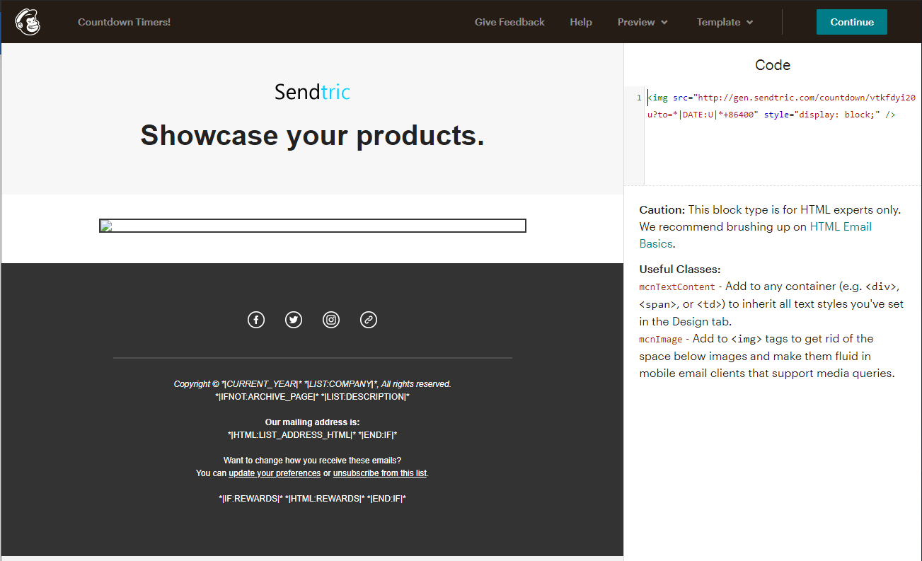 2. Add your Dynamic Timer code to your Mailchimp template. See our tutorial about adding a timer to your Mailchimp template.