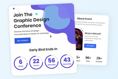 Get people hyped up for your product launch, event and maximise interest and ticket sales by creating urgency and fear of missing out (FOMO) with countdown timers.